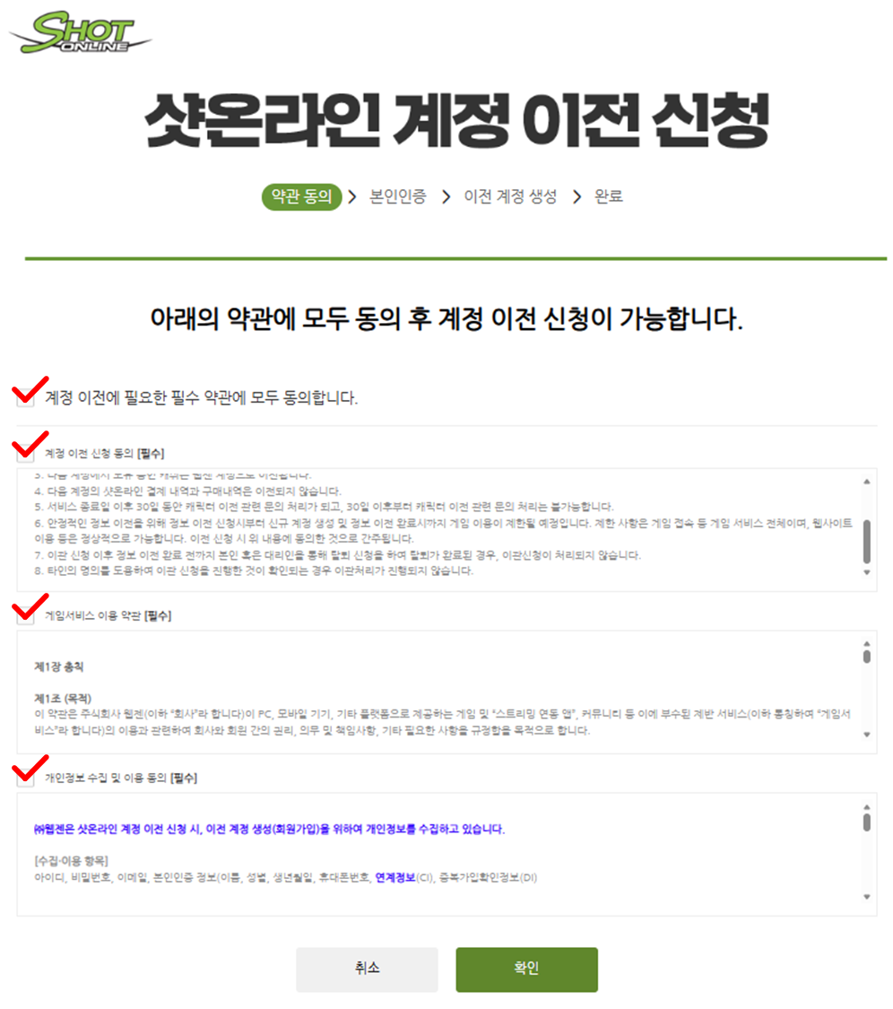 [2] 계정 이전에 필요한 필수 약관을 꼼꼼히 확인하신 뒤 동의해 주세요.