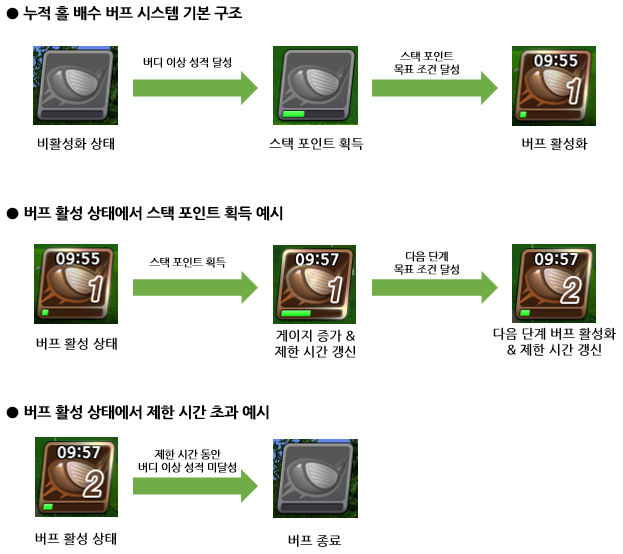 - 누적 홀 배수 버프 시스템